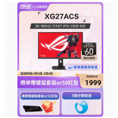 首页 > 电子产品 > 电子产品 > ROG XG27ACS绝杀27青春版 显示器电竞180Hz 27英寸2k显示屏幕电脑